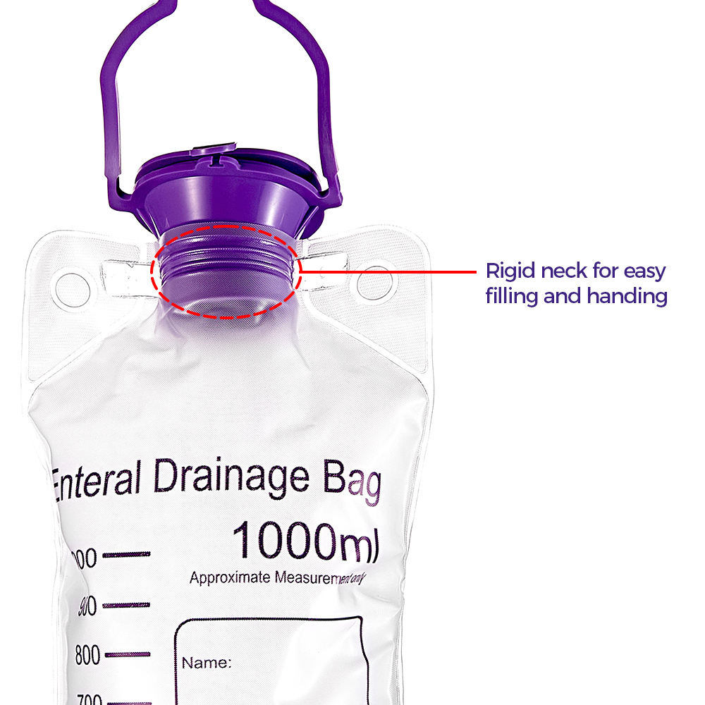 ● Enteral Feeding Bag is a durable enteral feeding bag that comes with attached Enteral feedingspike set consisting of flexible drip chamber pump set or gravity set,built-in hangers and a largetop fill opening with leak-proof cap.